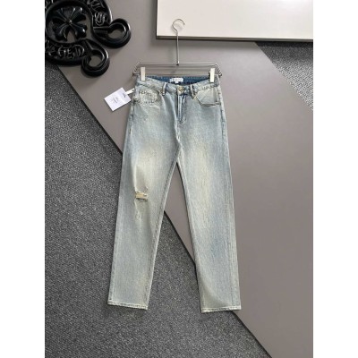 Light-colored ripped casual jeans